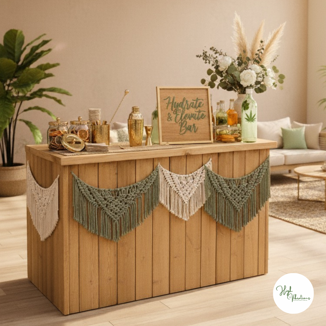 Perfect for slightly larger events such as corporate team-building sessions, holiday parties, or celebrations. With more space and interaction, these events can include multiple stations, such as our Rolling Bar, Flower Bar, and Hydrate & Elevate Bar.